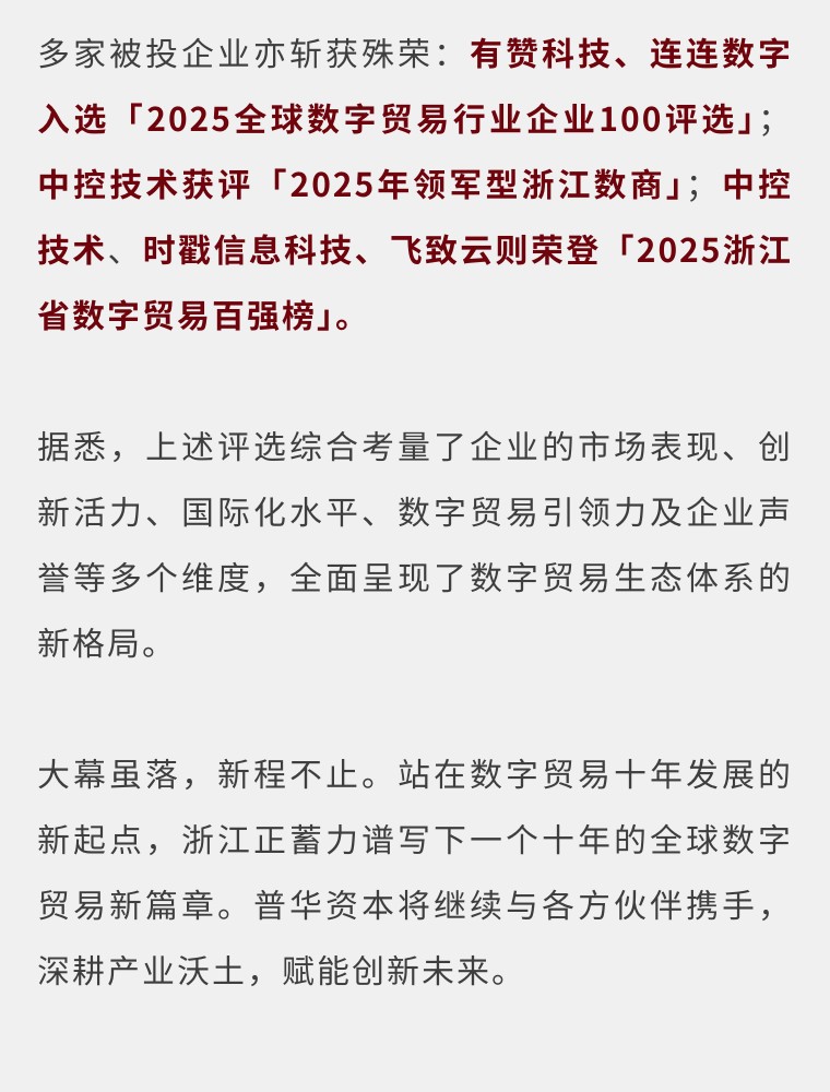 第四届全球数贸会 | 普华资本及被投企业荣登系列权威榜单